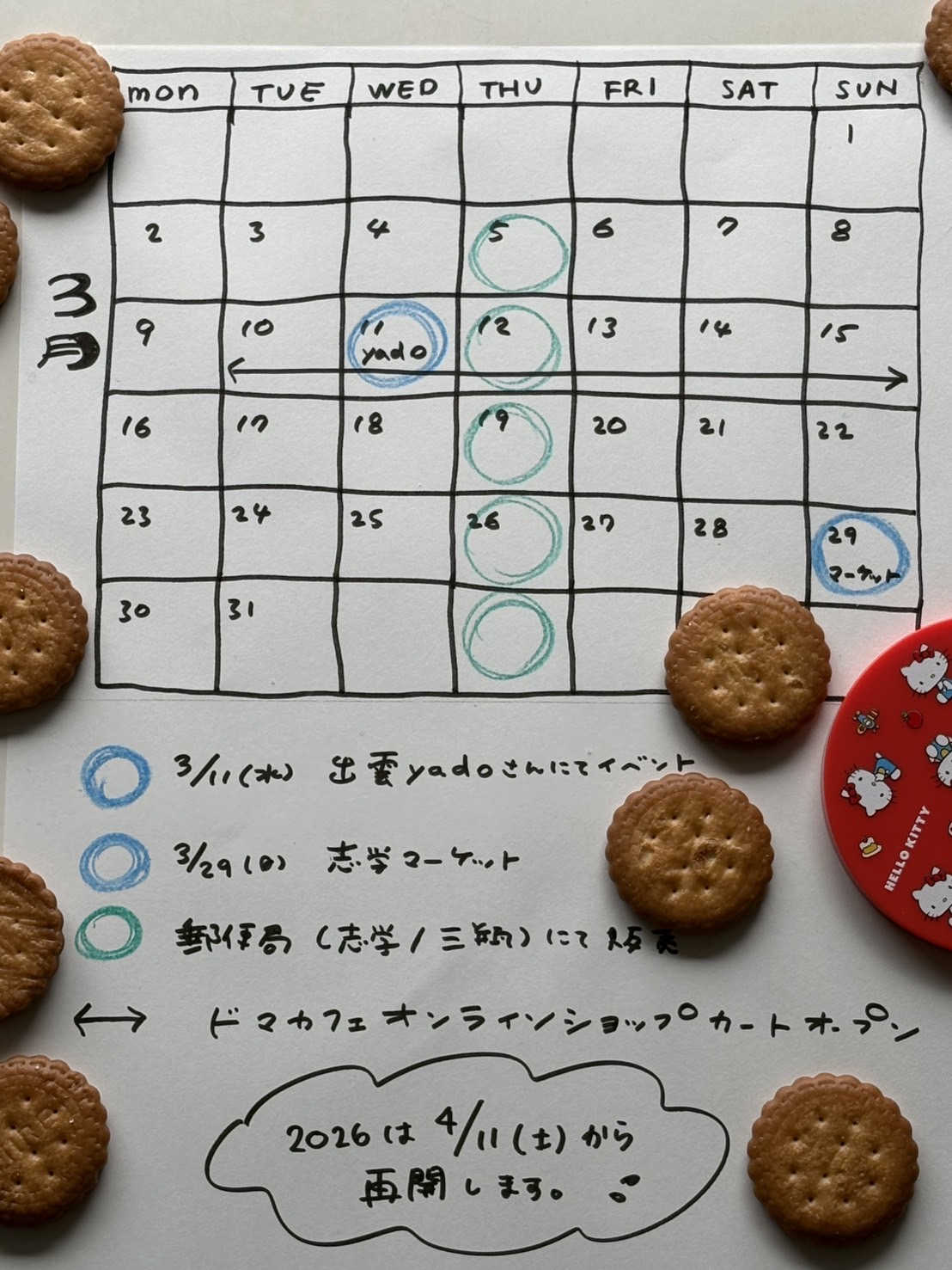 - 2026.03.033月カフェ営業・イベント出店について